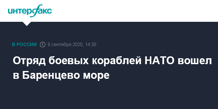 Москва. 8 сентября. INTERFAX.RU - Отряд боевых кораблей НАТО вошел в акваторию Баренцева моря, сообщили в Национальном центре управления обороной (НЦУО) РФ.