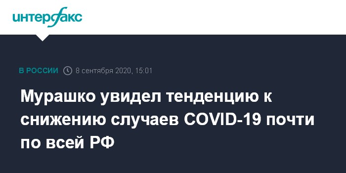 Москва. 8 сентября. INTERFAX.RU - Глава Минздрава России Михаил Мурашко заявил, что заболеваемость новой коронавирусной инфекцией в России имеет тенденцию к снижению во всех регионах страны.