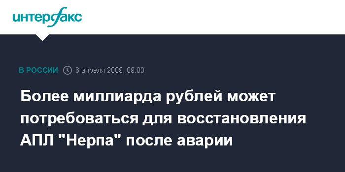 Более миллиарда рублей может потребоваться для восстановления АПЛ "Нерпа" после аварии