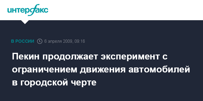 Как сообщалось, с октября 2008 г. в Пекине все частные и служебные автомобили, (за исключением общественного транспорта и такси) раз в неделю не имели права въезжать в пределы города в будние дни. Так, по понедельникам на дорогах города с началом эксперимента было запрещено движение машин с номерами, которые заканчивались "1" и "6", по вторникам - на "2" и "7" и так далее.