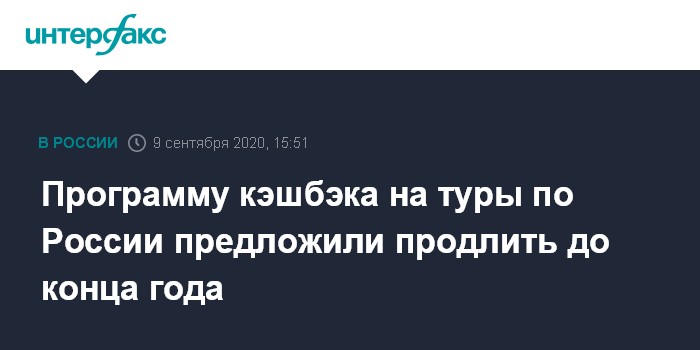 Москва. 9 сентября. INTERFAX.RU - Правительство РФ считает, что программу кэшбэка на туры по России нужно продлить как минимум до конца года, захватив новогодние каникулы, заявил в среду на совещании президента Владимира Путина с членами правительства вице-премьер Дмитрий Чернышенко.