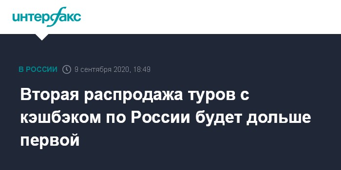 Первая распродажа туров по России с кэшбэком прошла 21-28 августа. В ее рамках порядка 70 тыс. туристов купили путешествий более чем на 1,4 млрд рублей. Правительство выделило на реализацию программы 15 млрд рублей, ее цель - поддержка туристической отрасли, пострадавшей от пандемии коронавируса. Сразу после окончания акции эксперты туротрасли заявили, что она стала эффективным инструментом повышения продаж туров по России, и ее нужно продлевать, смягчив условия участия и для поставщиков услуг, и для туристов.