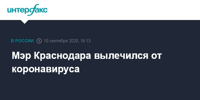 Москва. 10 сентября. INTERFAX.RU - Мэр Краснодара Евгений Первышов, заразившийся коронавирусом, выписан из больницы после успешного лечения.