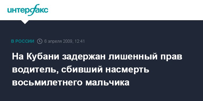 На Кубани задержан лишенный прав водитель, сбивший насмерть восьмилетнего мальчика