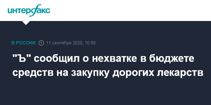 Москва. 11 сентября. INTERFAX.RU - На закупки дорогостоящих лекарств в РФ не хватает средств из федерального бюджета, поэтому Минздраву приходится выдвигать дополнительные требования при расширении списка таких препаратов - в частности, ограничивать число пациентов, которые могут бесплатно получить их, пишет в пятницу "Коммерсантъ" со ссылкой на письмо министерства руководителям органов исполнительной власти субъектов РФ.