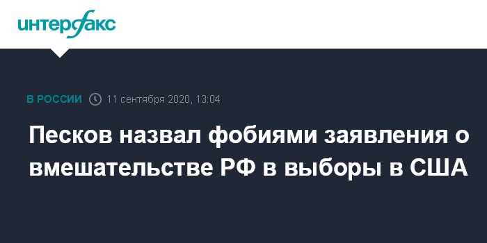 Москва. 11 сентября. INTERFAX.RU - Пресс-секретарь президента РФ Дмитрий Песков назвал фобиями утверждения о вмешательстве хакеров из РФ в американские выборы.