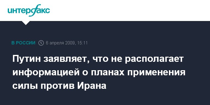 Москва. 6 апреля. INTERFAX.RU - Премьер-министр РФ Владимир Путин заявил, что не располагает информацией о том, что кто-то планирует применять силу против Ирана.