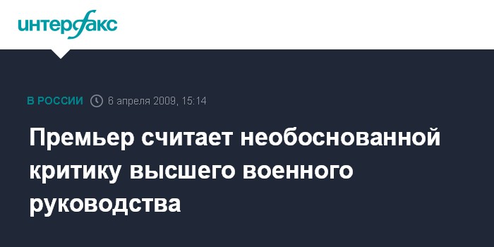Москва. 6 апреля. INTERFAX.RU - Премьер-министр РФ Владимир Путин считает необоснованной критику в адрес высшего военного руководства, в том числе министра обороны.