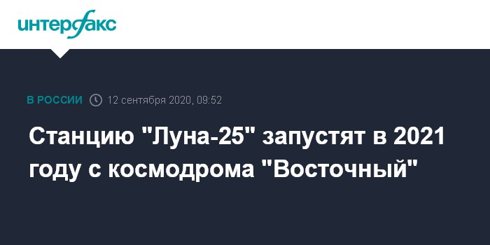 Москва. 12 сентября. INTERFAX.RU - "Роскосмос" планирует осуществить до семи пусков с космодрома "Восточный" в 2021 году, включая запуск автоматической станции "Луна-25", сообщил глава госкорпорации Дмитрий Рогозин.