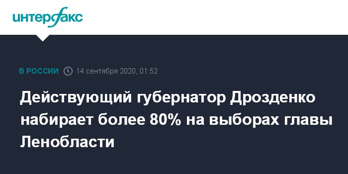 Действующий губернатор Дрозденко набирает более 80% на выборах главы Ленобласти
