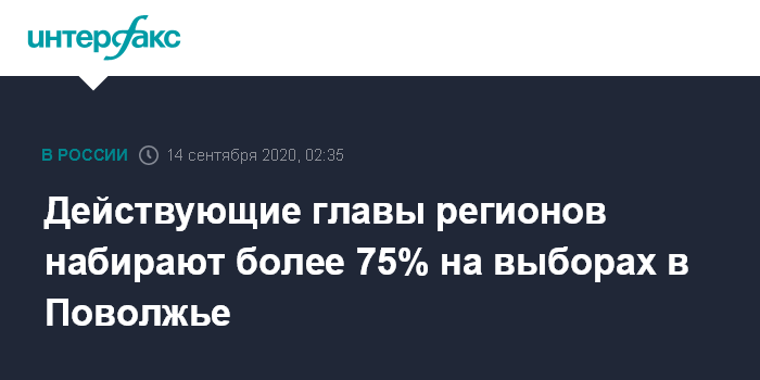Москва. 14 сентября. INTERFAX.RU - На выборах глав Татарстана, Чувашии, Пермского края и Пензенской области, состоявшихся в Приволжском федеральном округе, с очевидным перевесом продолжают лидировать действующие руководители регионов, следует из данных ЦИК РФ, размещенных в эфире телеканала "Россия 24".