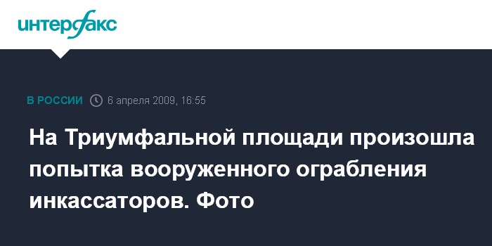 Москва. 6 апреля. INTERFAX.RU - Три человека ранены в результате попытки вооруженного ограбления, совершенного около 16:30 на Триумфальной площади Москвы.