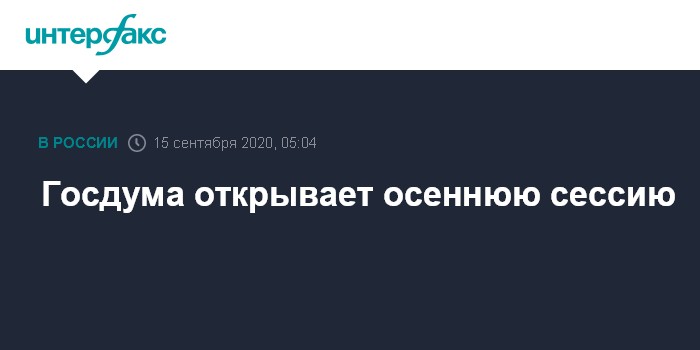 Москва. 15 сентября. INTERFAX.RU - Госдума во вторник проведет первое пленарное заседание в осенней сессии 2020 года.