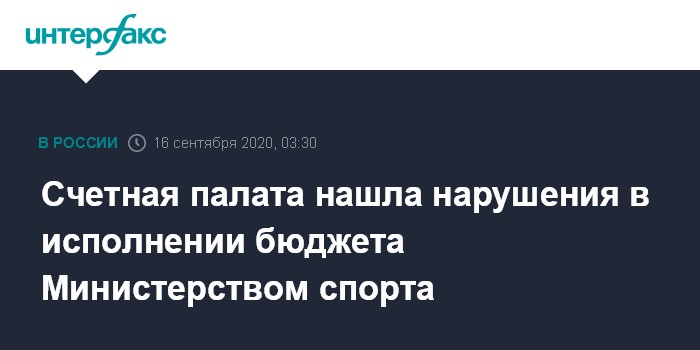 Москва. 16 сентября. INTERFAX.RU - Счетная палата проверила, как в 2019 году исполняло бюджет Министерство спорта Российской Федерации.