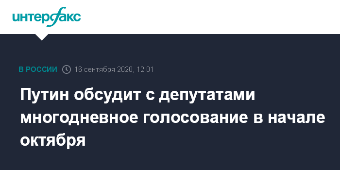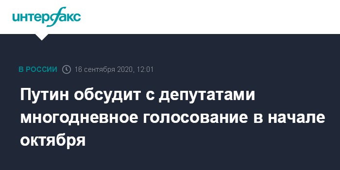 Путин обсудит с депутатами многодневное голосование в начале октября