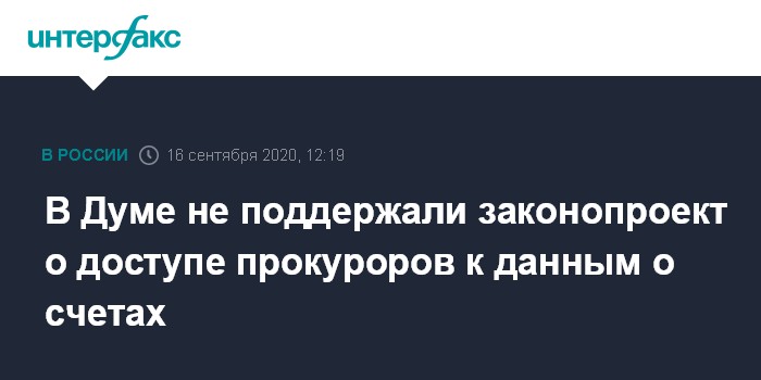 Москва. 16 сентября. INTERFAX.RU - Комитет Госдумы по финансовому рынку на заседании в среду рекомендовал отклонить законопроект, который наделяет прокуратуру полномочиями по получению информации в банках о движениях по счетам юридических лиц и предпринимателей (ИП), а также по операциям, счетам и вкладам физических лиц.
