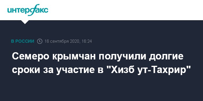 Москва. 16 сентября. INTERFAX.RU - Южный окружной военный суд в Ростове-на-Дону признал семерых жителей Крыма участниками запрещенной террористической организации "Хизб ут-Тахрир", сообщила пресс-служба суда.