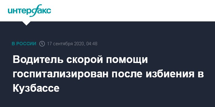 Москва. 17 сентября. INTERFAX.RU - Неизвестные избили водителя скорой помощи в Новокузнецке, пока врачи находились на вызове, сообщили "Интерфаксу" в пресс-службе областного центра медицины катастроф в четверг.