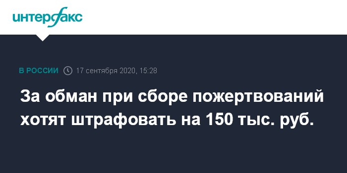 За обман при сборе пожертвований хотят штрафовать на 150 тыс. руб.