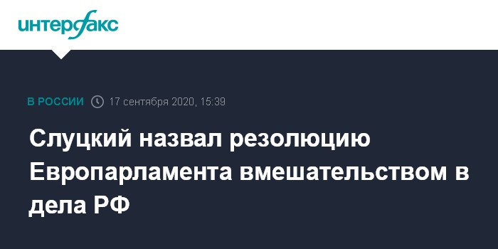 Москва. 17 сентября. INTERFAX.RU - Председатель комитета Госдумы по международным делам Леонид Слуцкий считает, что принятая в четверг Европарламентом резолюция - пример вмешательства во внутренние дела РФ.