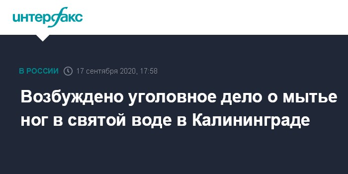 Москва. 17 сентября. INTERFAX.RU - В отношении двух военнослужащих Балтийского флота возбуждено уголовное дело по статье об оскорблении религиозных чувств (ч.1, ст. 148 УК), сообщил информированный источник "Интерфакса". Они недавно вымыли обувь в святой воде православной часовни "Живописный источник" в Калининграде.