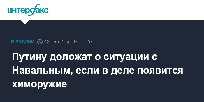 Путину доложат о ситуации с Навальным, если в деле появится химоружие