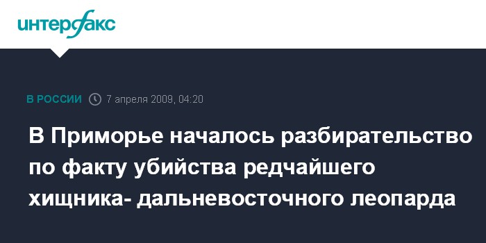 Владивосток. 7 апреля. ИНТЕРФАКС - ДАЛЬНИЙ ВОСТОК - В городе Уссурийск Приморского края сотрудники милиции обнаружили шкуру дальневосточного леопарда. Экспертиза показала, что редкий зверь был убит. Началось разбирательство.
