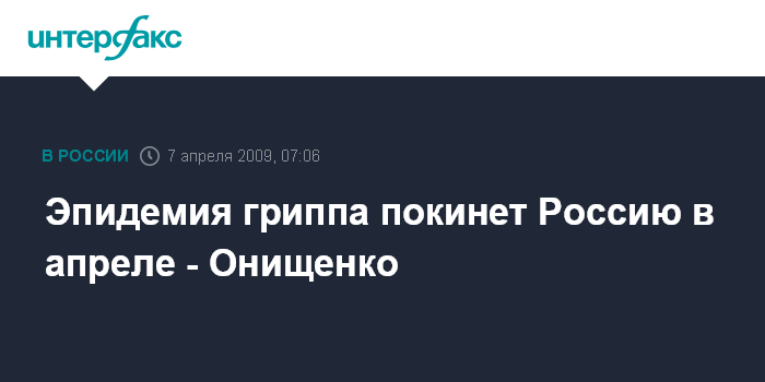 Эпидемия гриппа покинет Россию в апреле - Онищенко