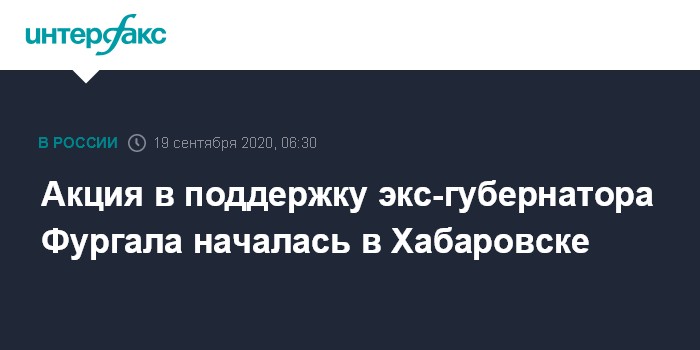 Москва. 19 сентября. INTERFAX.RU - Стихийная акция в поддержку бывшего губернатора Хабаровского края Сергея Фургала вновь проходит в Хабаровске, сообщает корреспондент "Интерфакса" с места события.