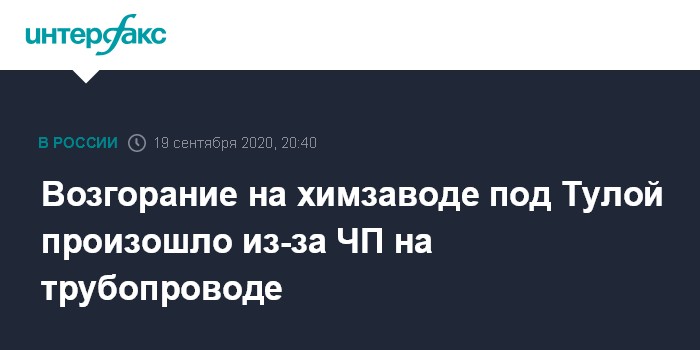 Возгорание на химзаводе под Тулой произошло из-за ЧП на трубопроводе