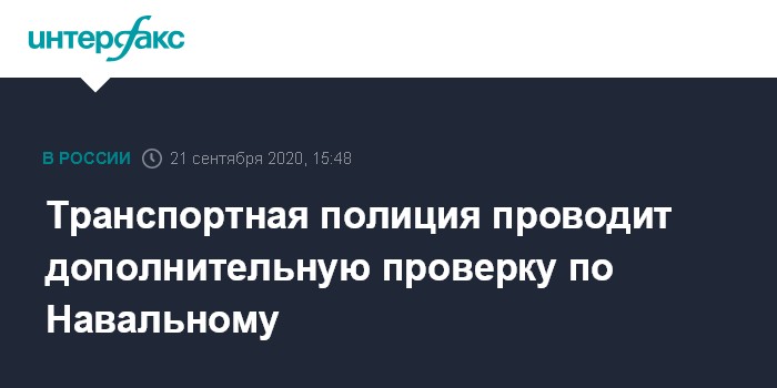 Москва. 21 сентября. INTERFAX.RU - Транспортная полиция проводит дополнительную проверку в связи с появлением в СМИ видеороликов и новой информации о случившемся с Алексеем Навальным, сообщает управление на транспорте МВД по Сибирскому федеральному округу. Доследственная проверка продолжается.