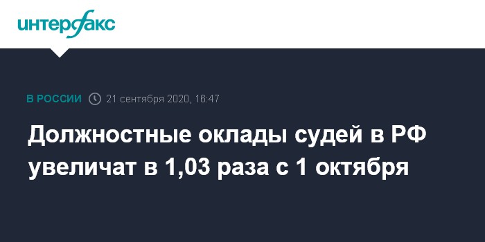Должностные оклады судей в РФ увеличат в 1,03 раза с 1 октября