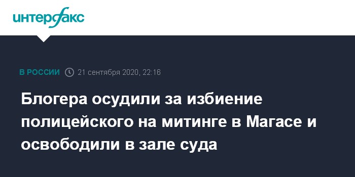 Блогера осудили за избиение полицейского на митинге в Магасе и освободили в зале суда
