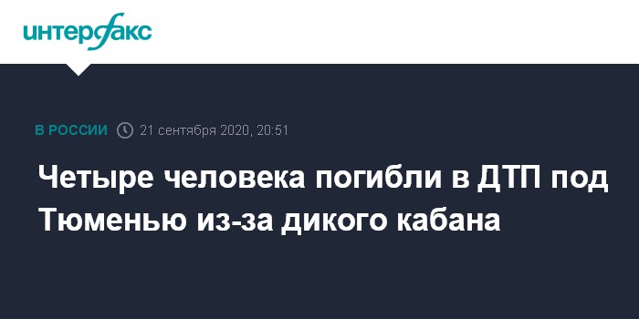 Четыре человека погибли в ДТП под Тюменью из-за дикого кабана