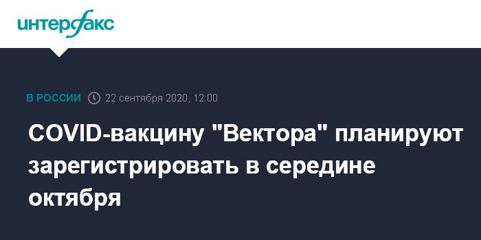Ранее в Роспотребнадзоре сообщили "Интерфаксу", что вакцина "ЭпиВакКорона" может пройти необходимые клинические исследования и подойти к этапу регистрации в октябре, а в ноябре в ведомстве уже рассчитывают начать производство.