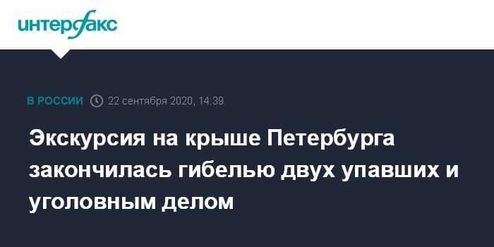 Накануне источник в правоохранительных органах сообщил "Интерфаксу", что 20 сентября в 20:20 в полицию сообщили о гибели двух человек, упавших с крыши дома по улице Рубинштейна. По данным СМИ, погибший молодой человек водил экскурсии, в том числе по крышам.