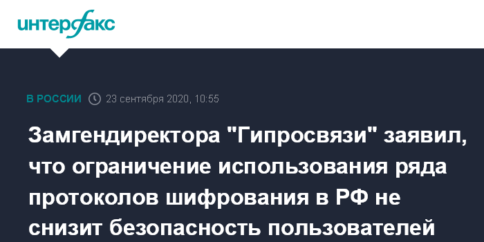 Замгендиректора "Гипросвязи" заявил, что ограничение использования ряда протоколов шифрования в РФ не снизит безопасность пользователей интернета