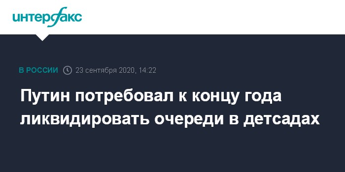 На встрече с сенаторами он напомнил, что из-за эпидемии в регионах не смогли выполнить намеченные планы по созданию новых мест. Несмотря на это, заявил Путин, "до конца текущего года отставания нужно наверстать и уже в следующем году обеспечить местами в яслях всех детей, и семьи нуждаются в этом".