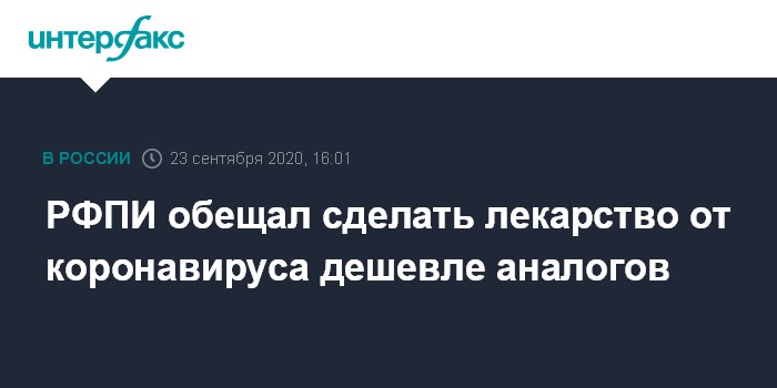 РФПИ обещал сделать лекарство от коронавируса дешевле аналогов
