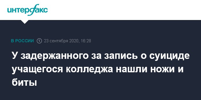 У задержанного за запись о суициде учащегося колледжа нашли ножи и биты