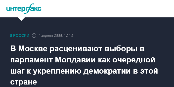 Москва. 7 апреля. INTERFAX.RU - В Москве следят за ситуацией в Молдавии и считают, что прошедшие в этой стране 5 апреля парламентские выборы - "очередной шаг в направлении укрепления в стране демократических норм и традиций".