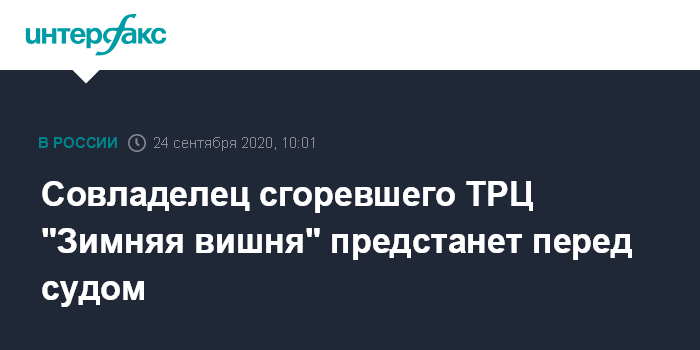 Совладелец сгоревшего ТРЦ "Зимняя вишня" предстанет перед судом