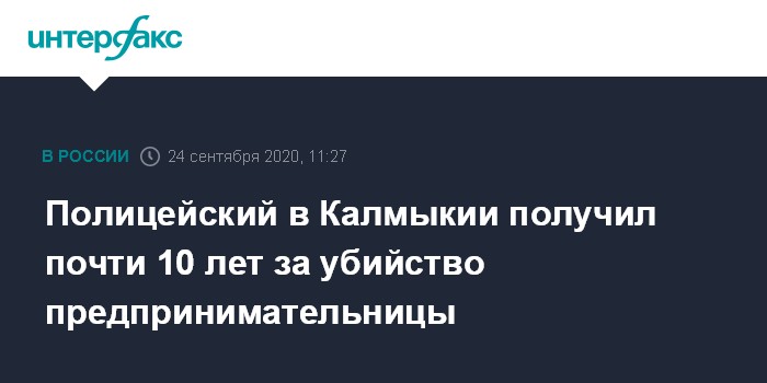Москва. 24 сентября. INTERFAX.RU - Элистинский городской суд признал бывшего сотрудника полиции виновным в убийстве местной предпринимательницы, сообщает в четверг пресс-служба прокуратуры Калмыкии.