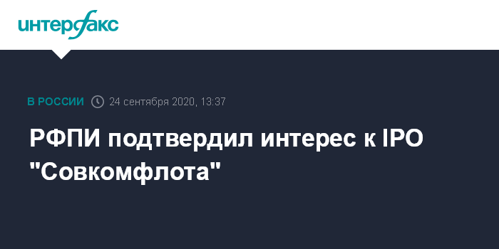 Москва. 24 сентября. INTERFAX.RU - Российский фонд прямых инвестиций (подтвердил интерес к инвестициям в "Совкомфлот", готовящийся провести IPO на "Московской бирже". Об этом упомянул руководитель фонда Кирилл Дмитриев.