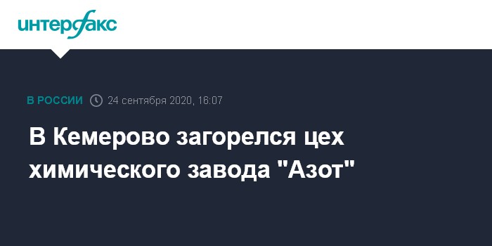 Москва. 24 сентября. INTERFAX.RU - Пожар возник в цеху на территории химического завода в Кемерово, сообщили "Интерфаксу" в пресс-службе МЧС России.
