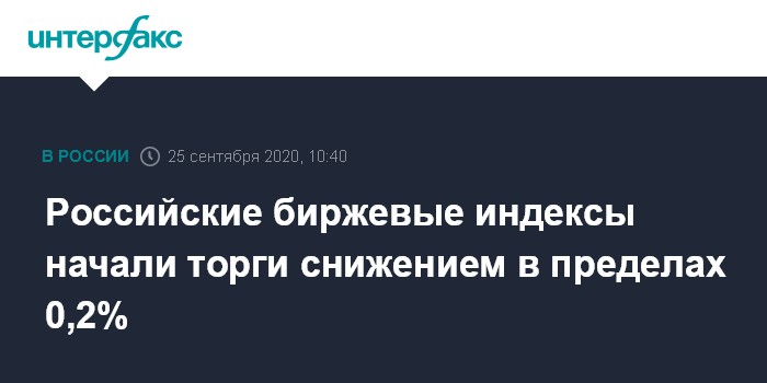 Российские биржевые индексы начали торги снижением в пределах 0,2%