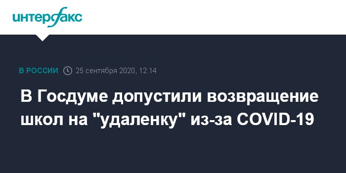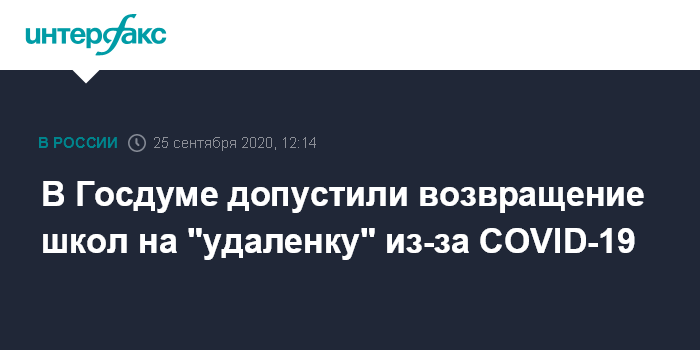 Москва. 25 сентября. INTERFAX.RU - Российские школы могут вернуть на удаленное обучение, если число заболевших COVID-19 продолжит расти, считает первый зампред Госдумы по образованию и науке Олег Смолин.