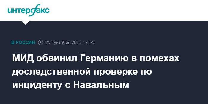 Как свидетельство того, что Германия противодействует проводимой в РФ доследственной проверке по инциденту с Навальным в МИД РФ рассматривают "категорический отказ от взаимодействия с российской стороной по линии правоохранительных органов и медицинских учреждений, игнорирование правомерных запросов Генпрокуратуры РФ и апелляция к "экспертному" потенциалу Организации по запрещению химоружия (ОЗХО)".