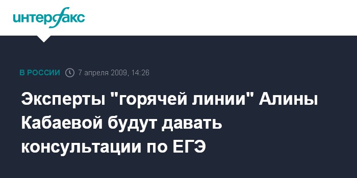 Москва. 7 апреля. INTERFAX.RU - "Горячую линию" по Единому государственному экзамену (ЕГЭ) запускает во вторник зампредседателя комитета Госдумы РФ по делам молодежи, олимпийская чемпионка по художественной гимнастике Алина Кабаева при поддержке Рособрнадзора.