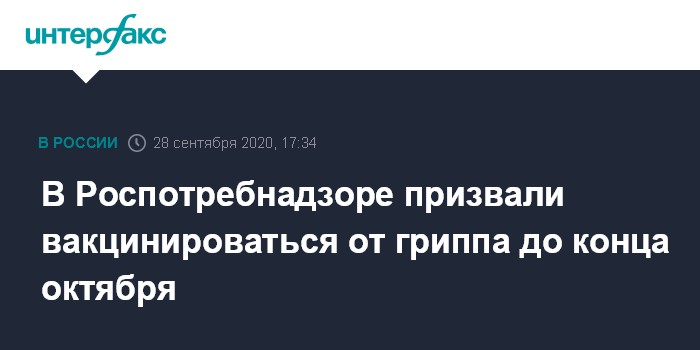 "До конца октября мы должны все сделать", - сказала Попова в эфире радиостанции "Комсомольская правда", отвечая на вопрос о том, до какого числа необходимо привиться от гриппа.